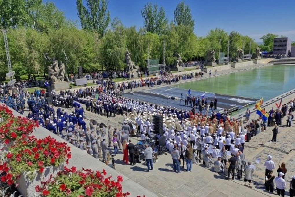 3 мая на Мамаевом кургане в исполнении сводного духового оркестра прозвучали гимн Российской Федерации, «Священная война» и «Славься», песня-символ «День Победы», композиция нашей землячки Александры Пахмутовой «Поклонимся великим тем годам!» и другие легендарные произведения.