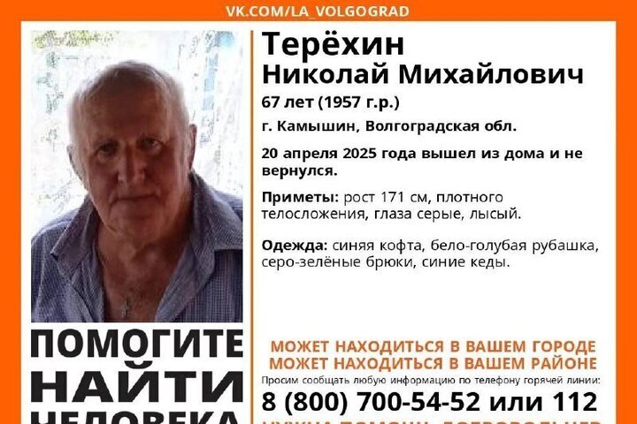 67-летний мужчина 20 апреля 2025 года вышел из дома и до сих пор не вернулся.