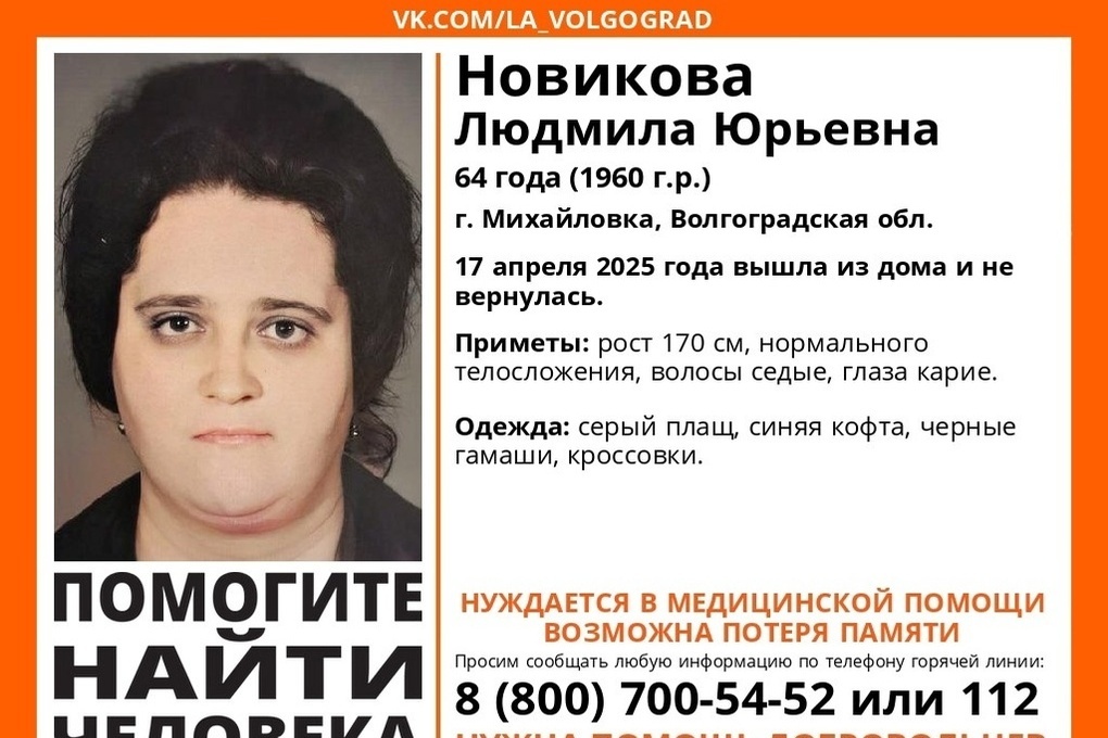 Поисками пропавшей пенсионерки кроме родных и полиции занимаются волонтеры отряда «Лиза Алерт. Волгоград». Работу добровольцев курирует инфорг Алайне (Светлана), с ней можно связаться по телефону 89195479263 или в тг @alaene34.