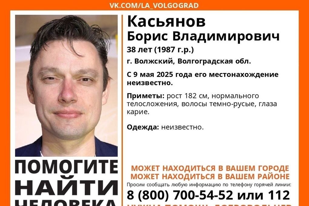Как сообщают волонтеры, о местонахождении Бориса Касьянова неизвестно с 9 мая. Уточняется, что у пропавшего рост 182 сантиметра, темные волосы и карие глаза, но какая была на нем в день пропажи одежда, неизвестно.