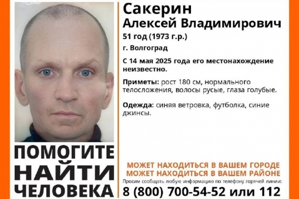 Рост пропавшего составляет 180 см, он нормального телосложения, у мужчины русые волосы и голубые глаза. В день пропажи волгоградец был одет в синюю ветровку, синие джинсы, футболку.