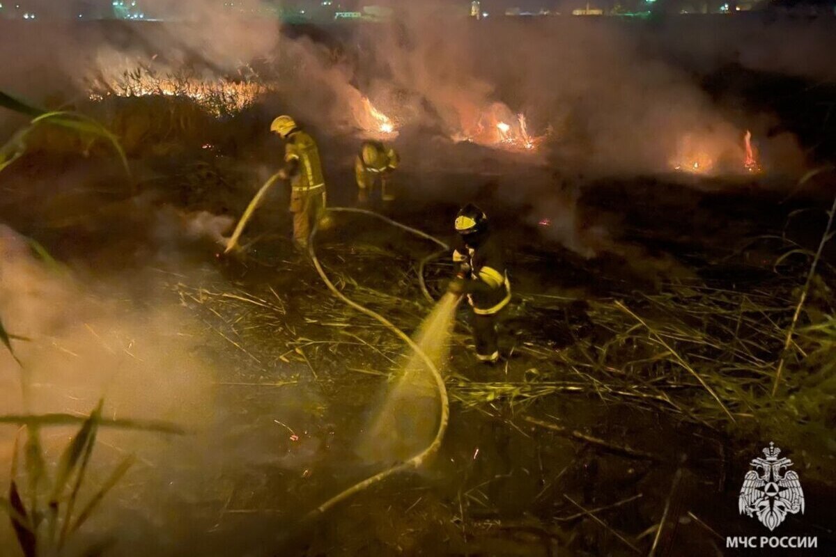 Как сообщили в пресс-службе ГУ МЧС по Волгоградской области, сотрудники ведомства ведут борьбу с огнем в Красноармейском районе Волгограда, где загорелись сухая трава и камыш.