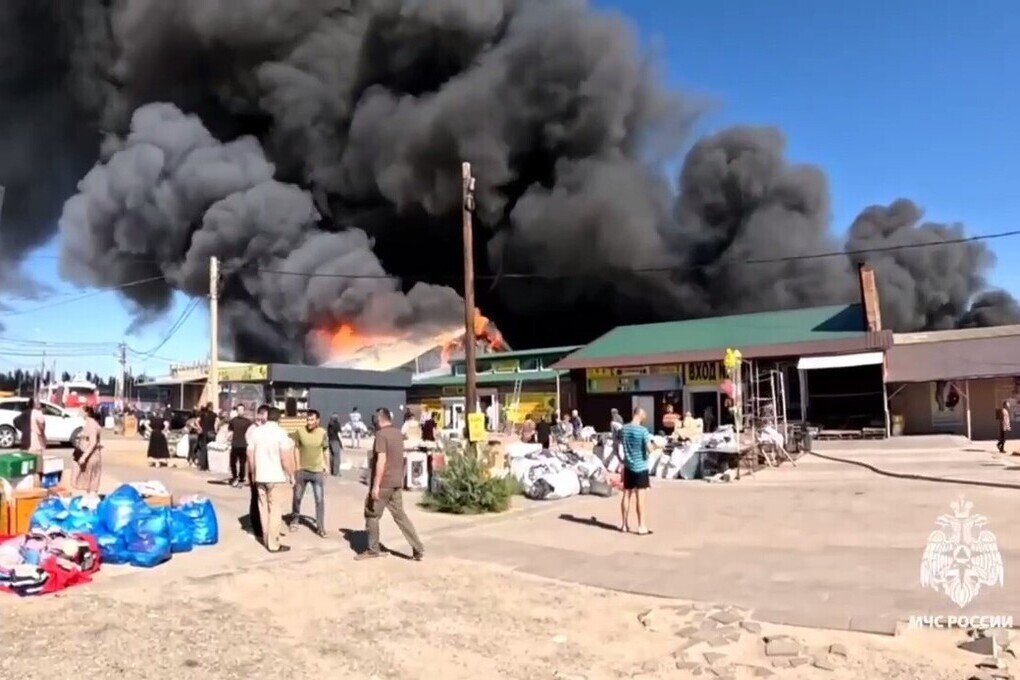 В Волгограде продолжается тушение пожара на рынке, начавшегося в субботу, 30 августа.