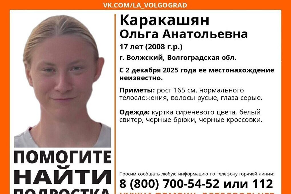 В Волгоградской области разыскивают Ольгу Каракашян. Девушка пропала в Волжском 2 декабря. Об этом сообщили активисты поискового отряда «ЛизаАлерт».