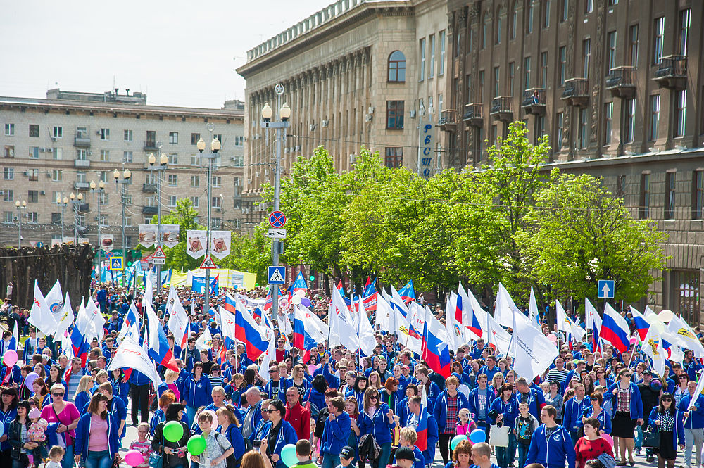 По проспекту Ленина прошли около 20 тысяч демонстрантов. Шествие стартовало на площади Ленина, которая век назад называлась Никольской. Тогда, 1 мая 1917 года 50 тысяч рабочих Царицына выступили за объединении профсоюзов. В нынешний Первомай шествие возглавила лидер волгоградских профсоюзов, председатель Общественной палаты региона Татьяна Гензе. Она отметила, что для нее День весны и труда ‑ праздник из детства, когда много воздушных шаров, флажков, играет музыка. Так было и в этот раз: шествие сопровождалось игрой оркестра духовых инструментов, люди несли флаги организаций и российского триколора, а также шары.