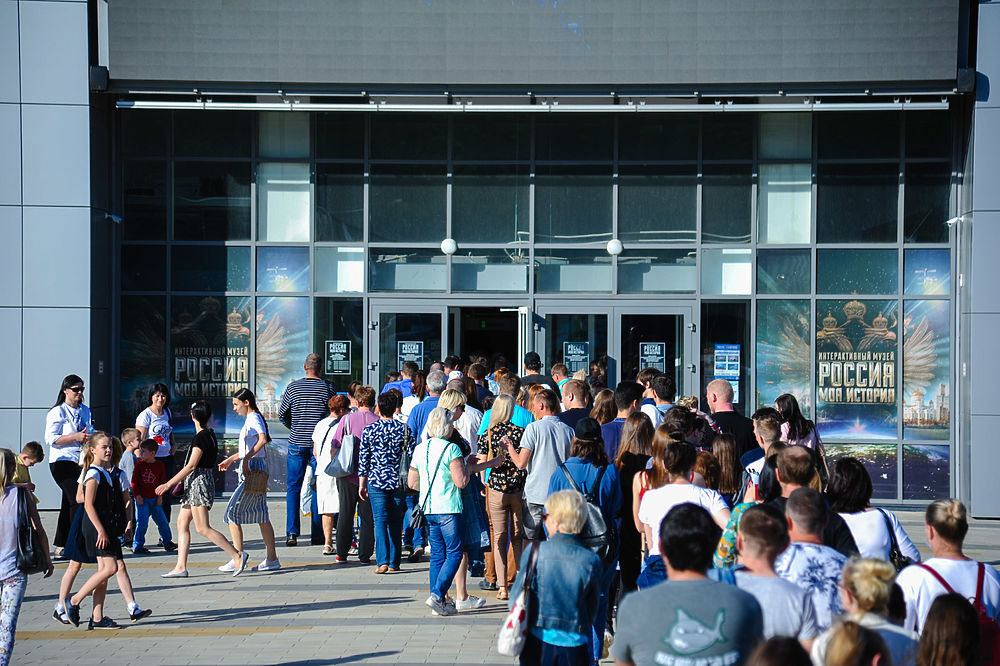 У входа в мультимедийный комплекс «Россия. Моя история» выстроилась  очередь из желающих посетить уникальные выставки и разные интерактивные площадки.