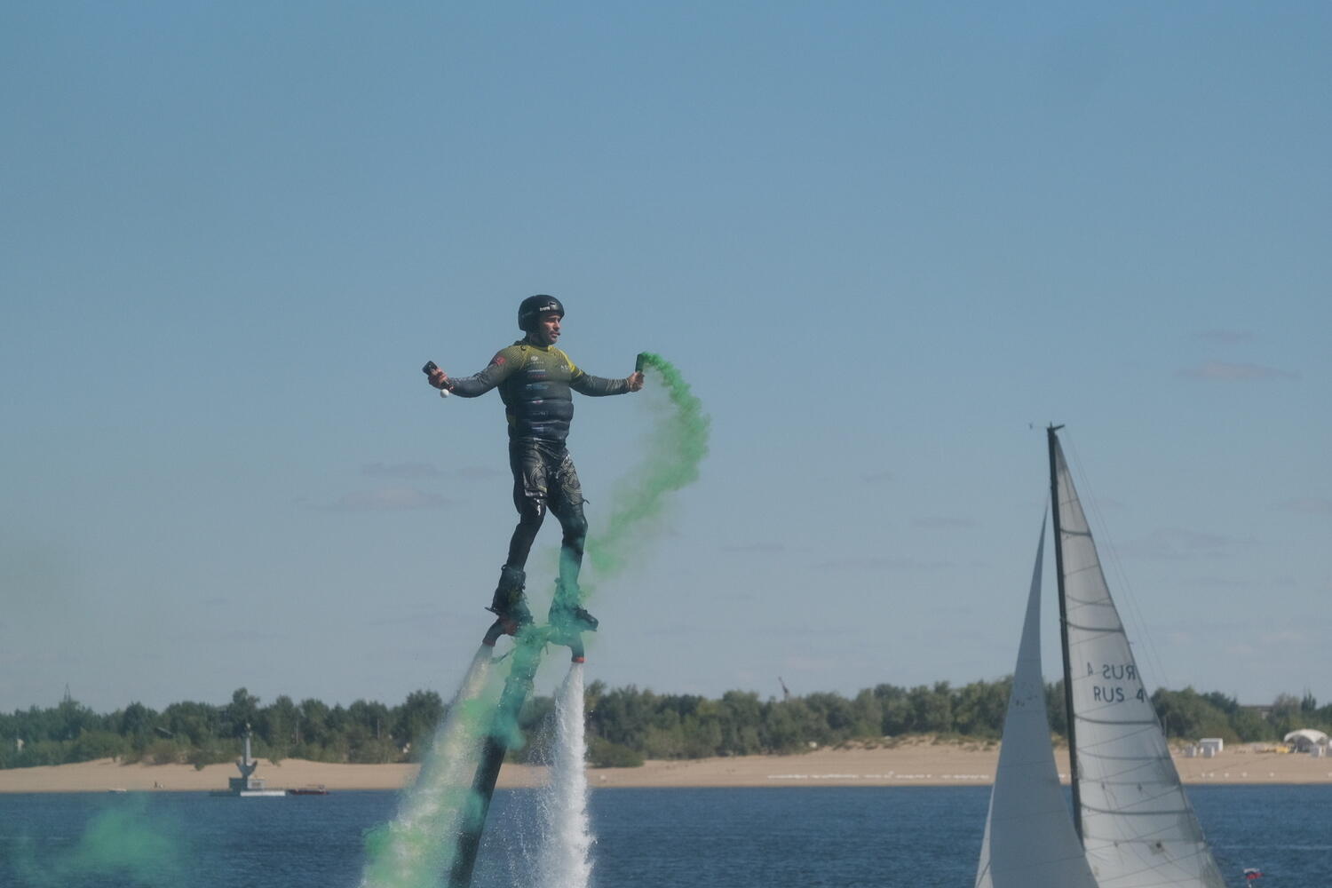 10 сентября в небе над акваторией Волги завораживающие трюки показали флайбордисты.