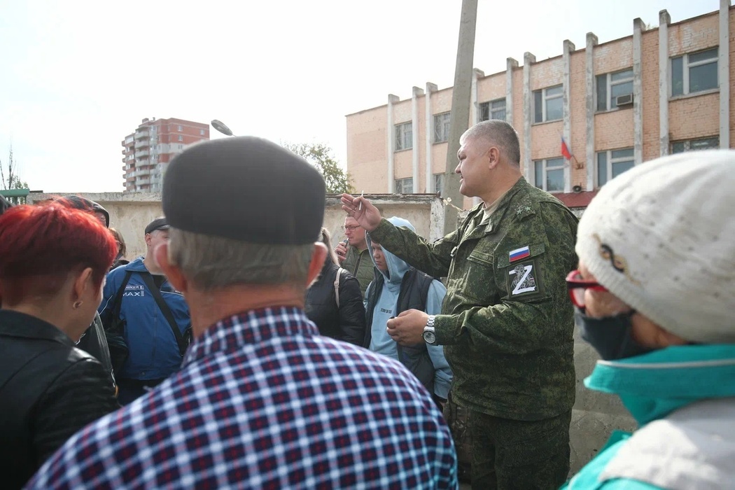 24 сентября у военкомата Советского, Ворошиловского и Кировского районов многолюдно. Прибывшие в пункт сбора призывники прощаются со своими женами, матерями, отцами и детьми, которые остаются дома. Некоторые не сдерживают эмоций из-за разлуки со своим близким человеком.