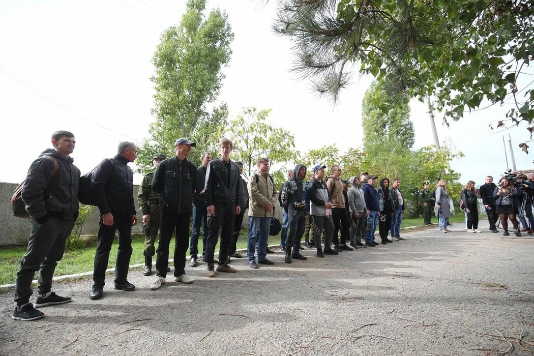 24 сентября у военкомата Советского, Ворошиловского и Кировского районов многолюдно. Прибывшие в пункт сбора призывники прощаются со своими женами, матерями, отцами и детьми, которые остаются дома. Некоторые не сдерживают эмоций из-за разлуки со своим близким человеком.