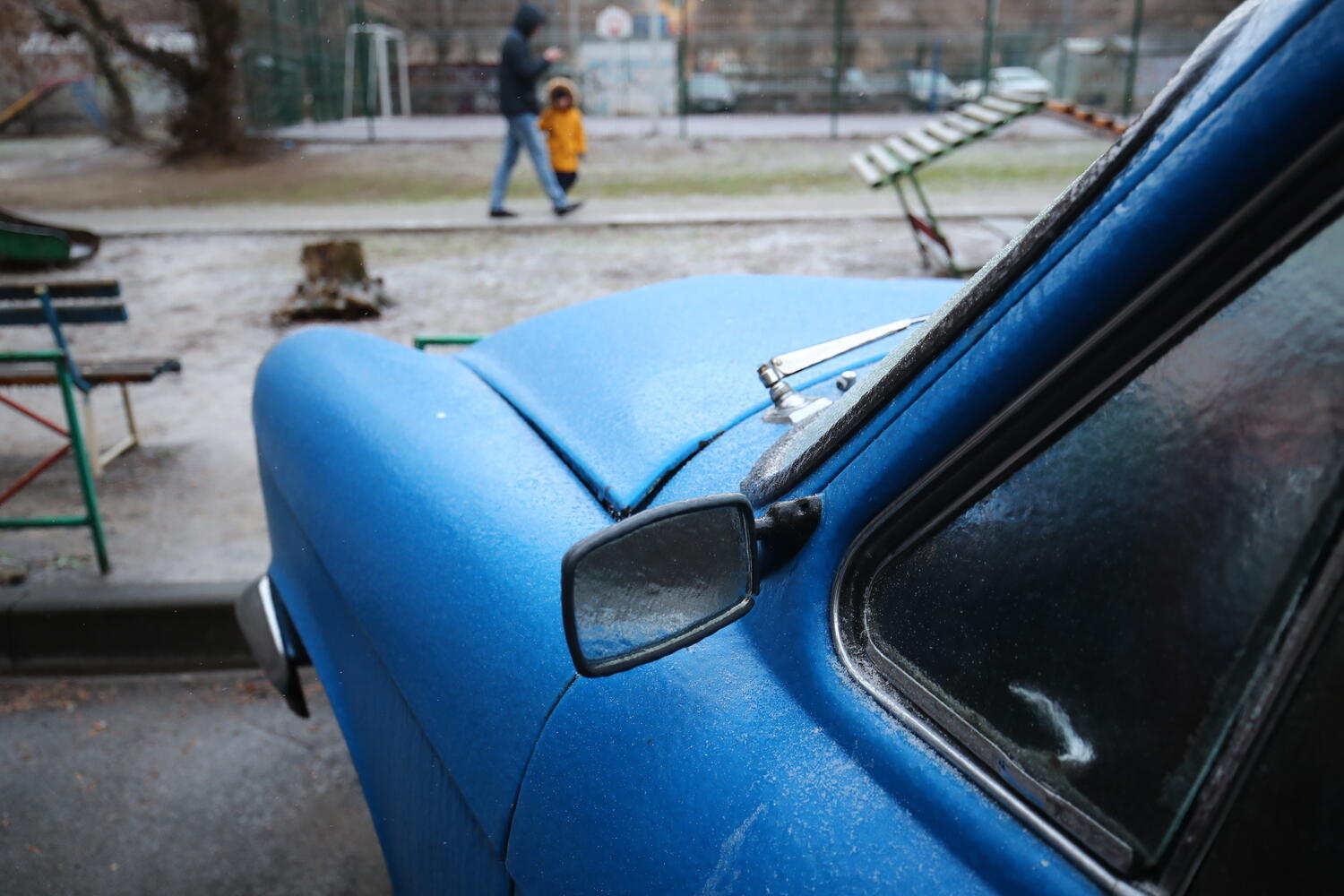 После плюсовой погоды в Волгоград пришли холода. В сочетании со снегом и дождем мороз привел к образованию снежной корки на деревьях, статуях, скамейках и автомобилях.