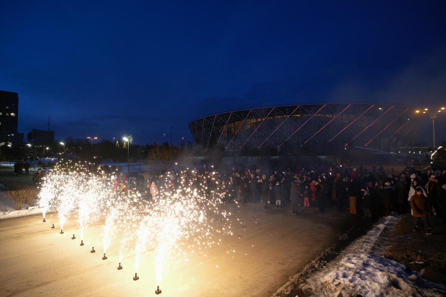 В центре Волгограда устроили фестиваль бенгальских огней