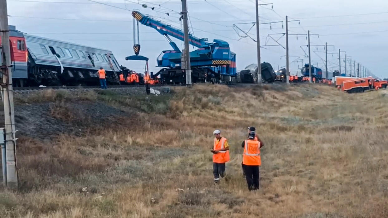 В Волгоградской области с рельсов сошел поезд: фото после ДТП с грузовиком