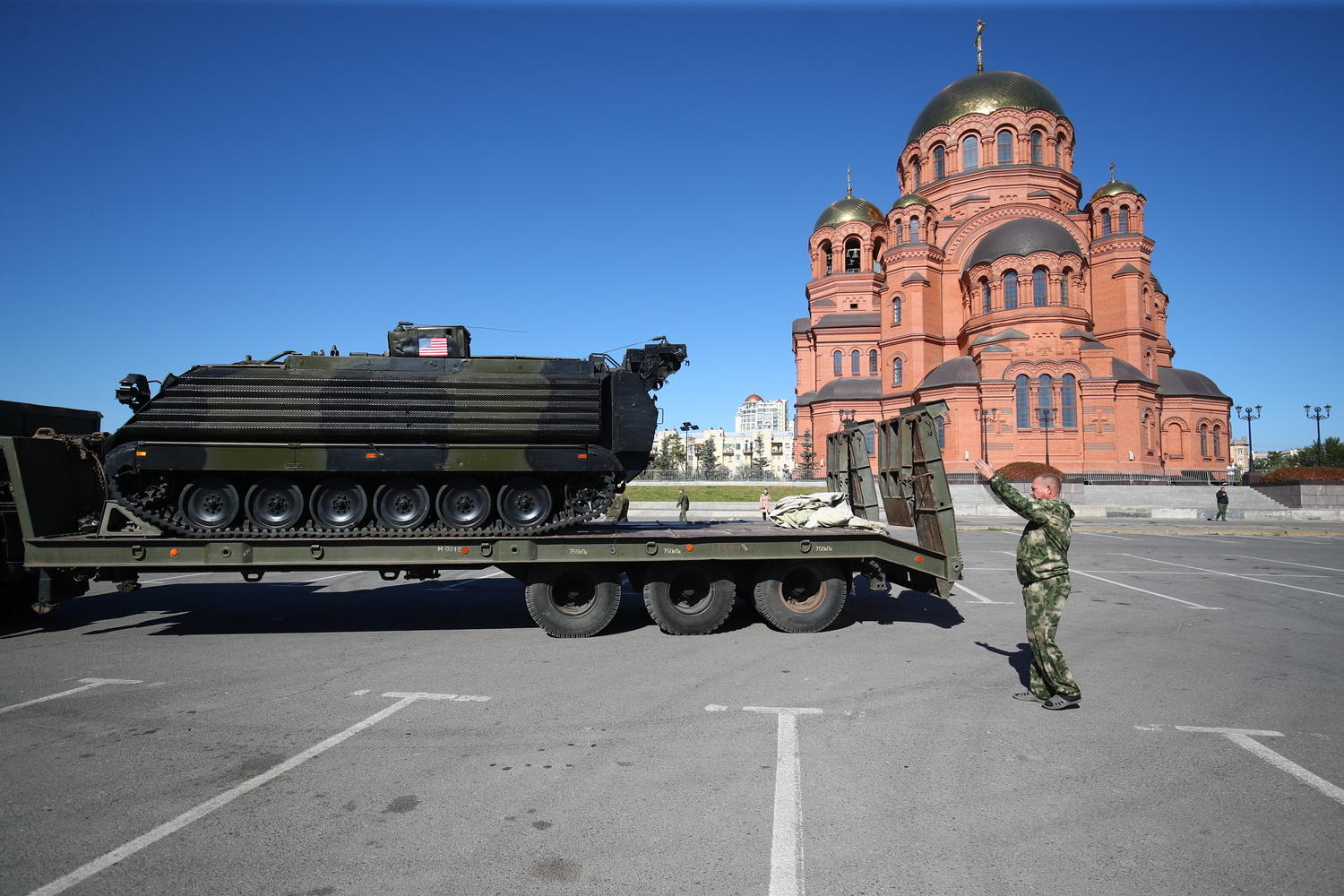 В центр Волгограда завезли технику НАТО: фото военных трофеев