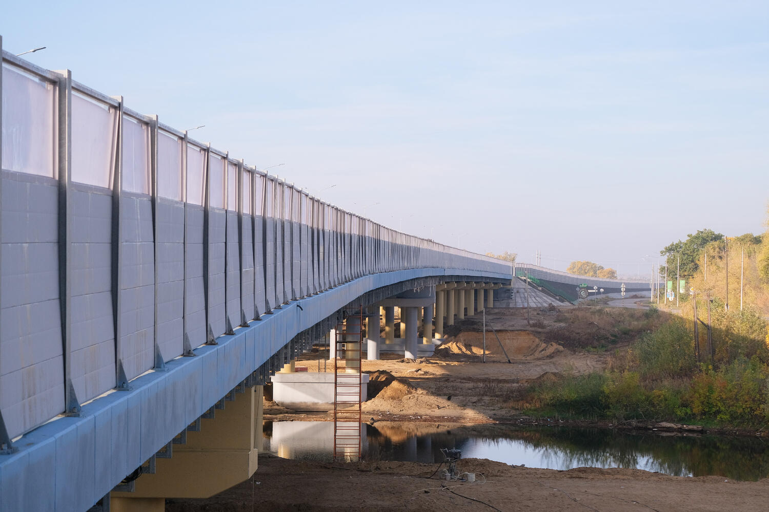 Работы по возведению 14-километрового Третьего Пускового комплекса выполняются по нацпроекту «Безопасные качественные дороги» в 2 этапа. Первый длиной 4,5 км включает в себя 2 моста и транспортную развязку. Здесь уже обустроена дорожная одежда основного хода и съездов, уложены тротуары и велодорожки, смонтированы линии наружного освещения, устроена ливневая канализация. На мосту через ерик Гнилой завершается монтаж шумозащитных экранов, перил и барьеров, движение по мосту через ерик Осинки открыто в полном объеме.