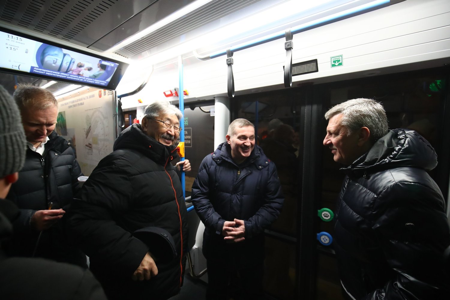 Глава региона Андрей Бочаров в ходе рабочей поездки оценил обновленную линию скоростного трамвая и новых вагонов.