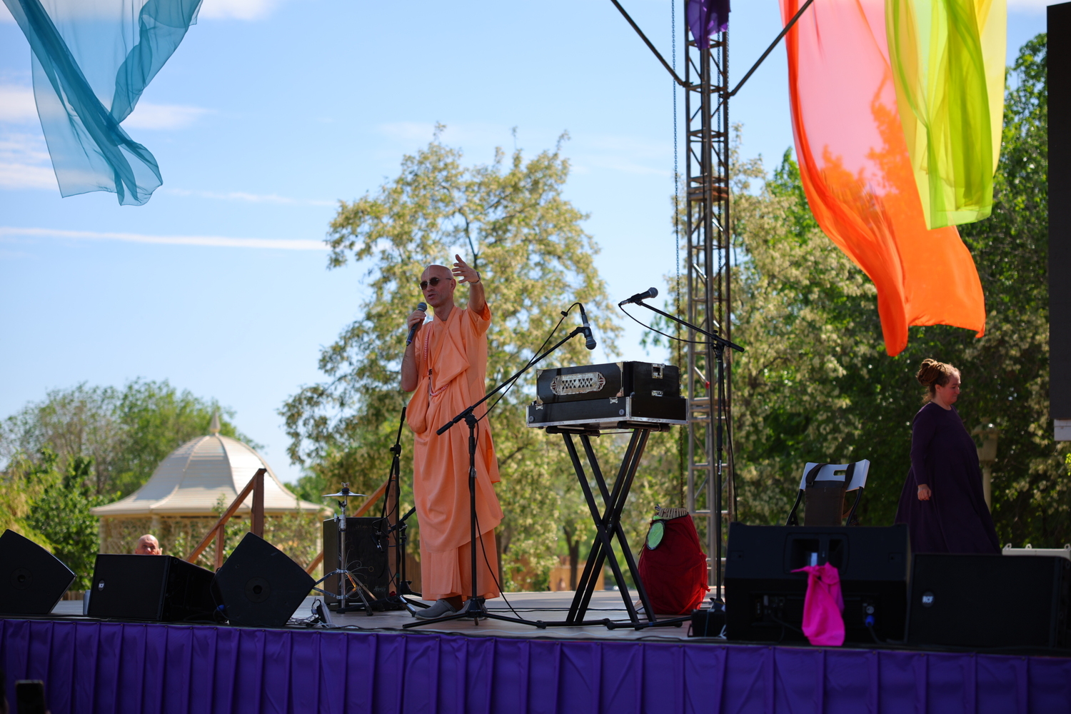 Торжества открыли шествие Ратха-Ятра – проездом 4-метровой колесницы по центральной аллее под ритмичные мантры и зажигательные индийские танцы. Каждый желающий мог к ней прикоснуться, загадать желание и угоститься экзотическими фруктами.