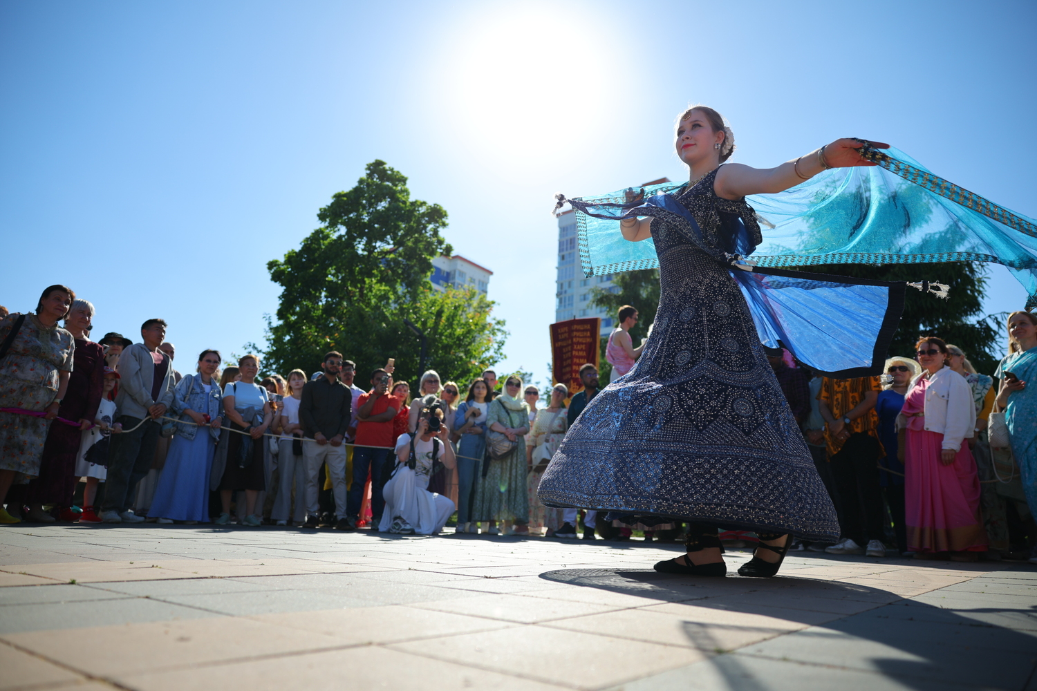 Торжества открыли шествие Ратха-Ятра – проездом 4-метровой колесницы по центральной аллее под ритмичные мантры и зажигательные индийские танцы. Каждый желающий мог к ней прикоснуться, загадать желание и угоститься экзотическими фруктами.