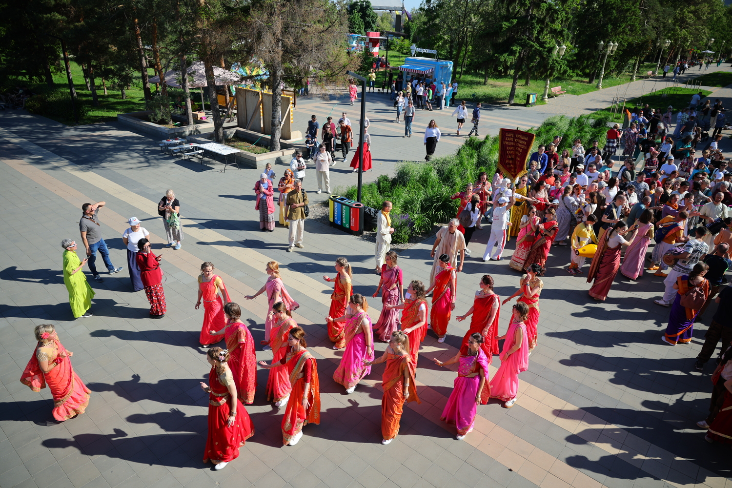 Торжества открыли шествие Ратха-Ятра – проездом 4-метровой колесницы по центральной аллее под ритмичные мантры и зажигательные индийские танцы. Каждый желающий мог к ней прикоснуться, загадать желание и угоститься экзотическими фруктами.