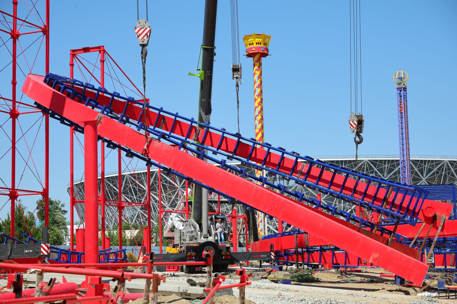 В волгоградском Центральном парке культуры и отдыха продолжается монтаж «Русских горок». В пятницу, 11 июля, на площадке будущего экстрим-аттракциона, были установлены две мертвые петли.