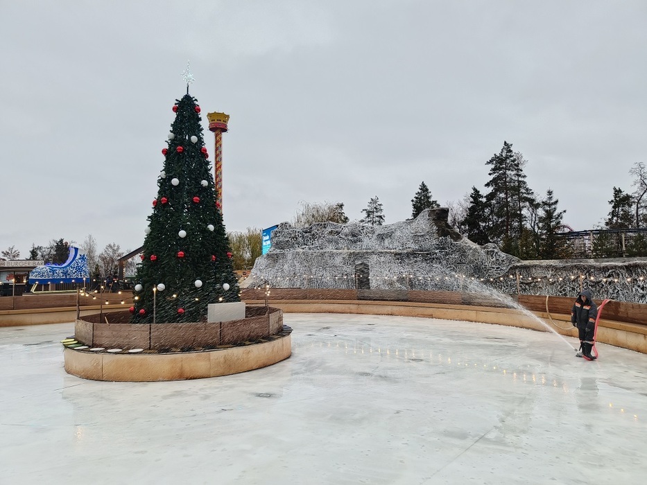 В Центральном парке культуры и отдыха уже завершается заливка льда на сезонном катке. Специалистам осталось нанести последние слои.
