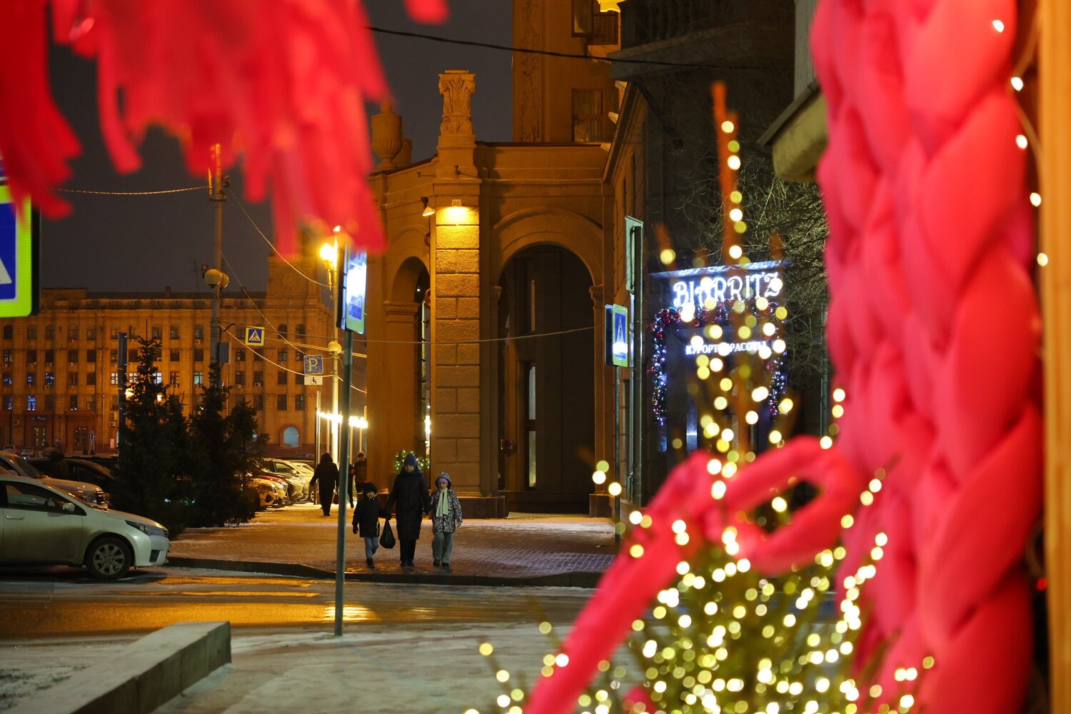 Улицы города-героя украсили гирлянды, елки и светящиеся фигуры.