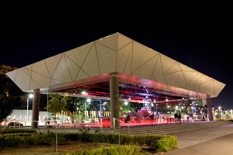 Впечатляющие объекты набережной: монументальная лестница с колоннадами и террасами, а также фонтан «Искусство» из красного гранита.