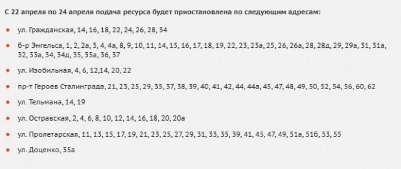 По информации ресурсоснабжающей организации, в самом южном районе города – Красноармейском в период с 22 по 24 апреля 2025 года подачу горячей воды приостановят по таким адресам: