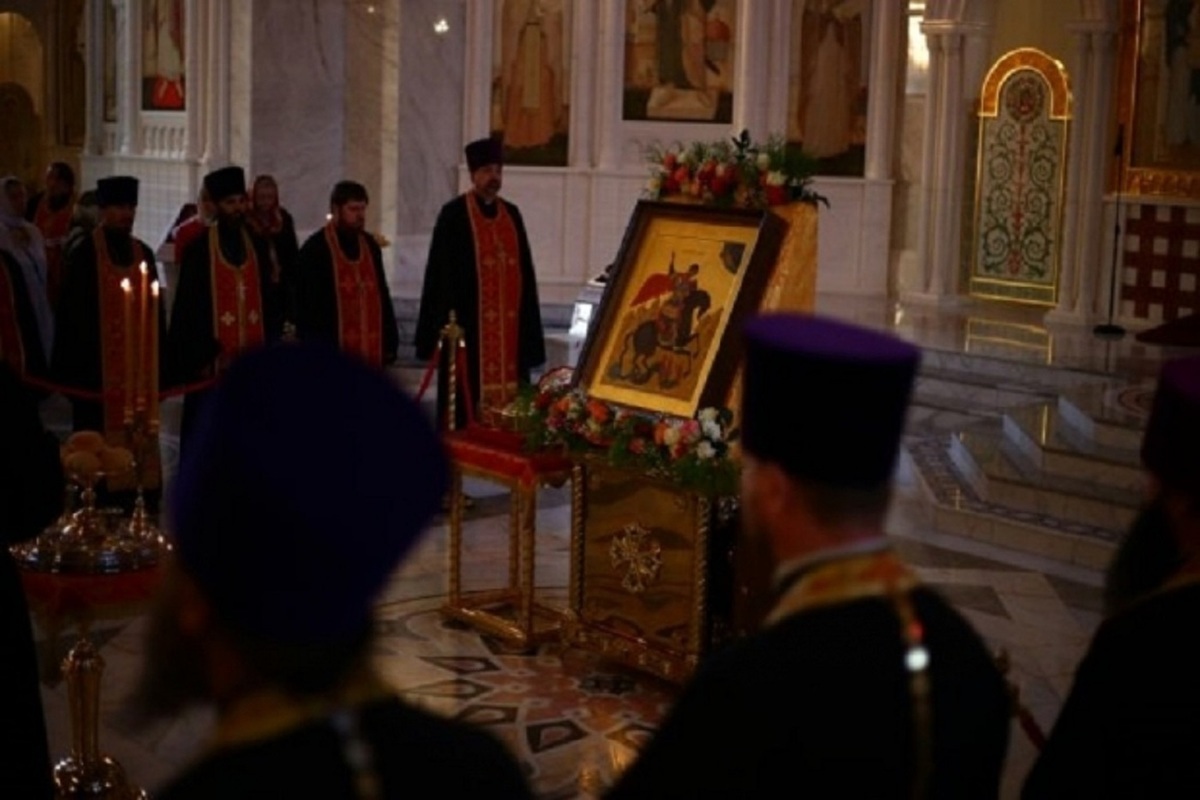 В Волгоградскую епархию ковчег с частицей мощей Георгия Победоносца прибыл 23 апреля, в среду Светлой седмицы. У стен кафедрального собора Александра Невского святыню встречали митрополит Волгоградский и Камышинский Феодор, духовенство и верующие.