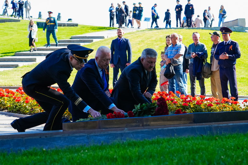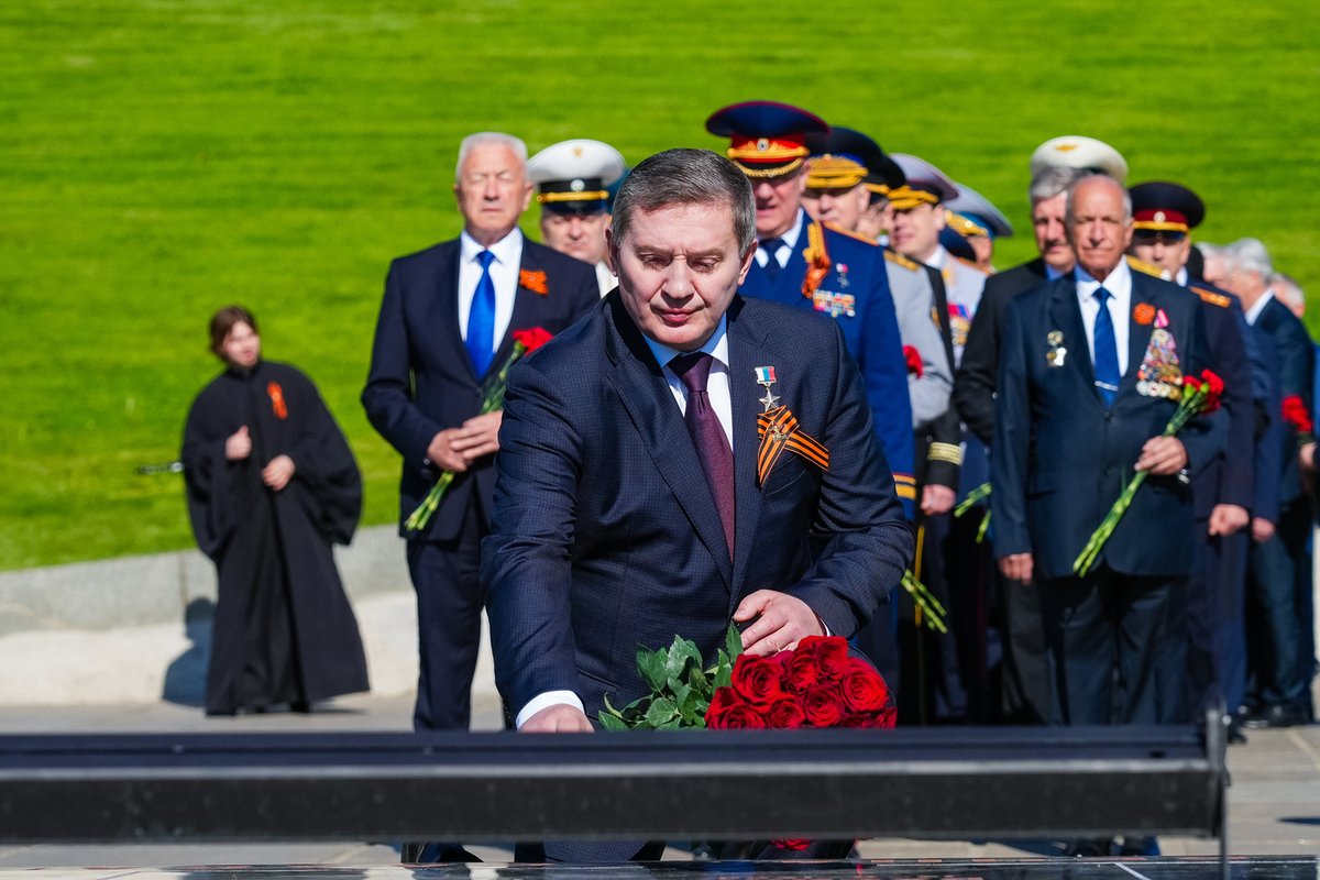 В сопровождении ветеранов, участников боевых действий, руководства надзорных и правоохранительных органов, депутатов и общественников глава региона возложил венки и цветы к Вечному огню в Зале Воинской славы, к могиле Маршала Советского Союза Василия Чуйкова, к могиле Неизвестного солдата и к Малой братской могиле.