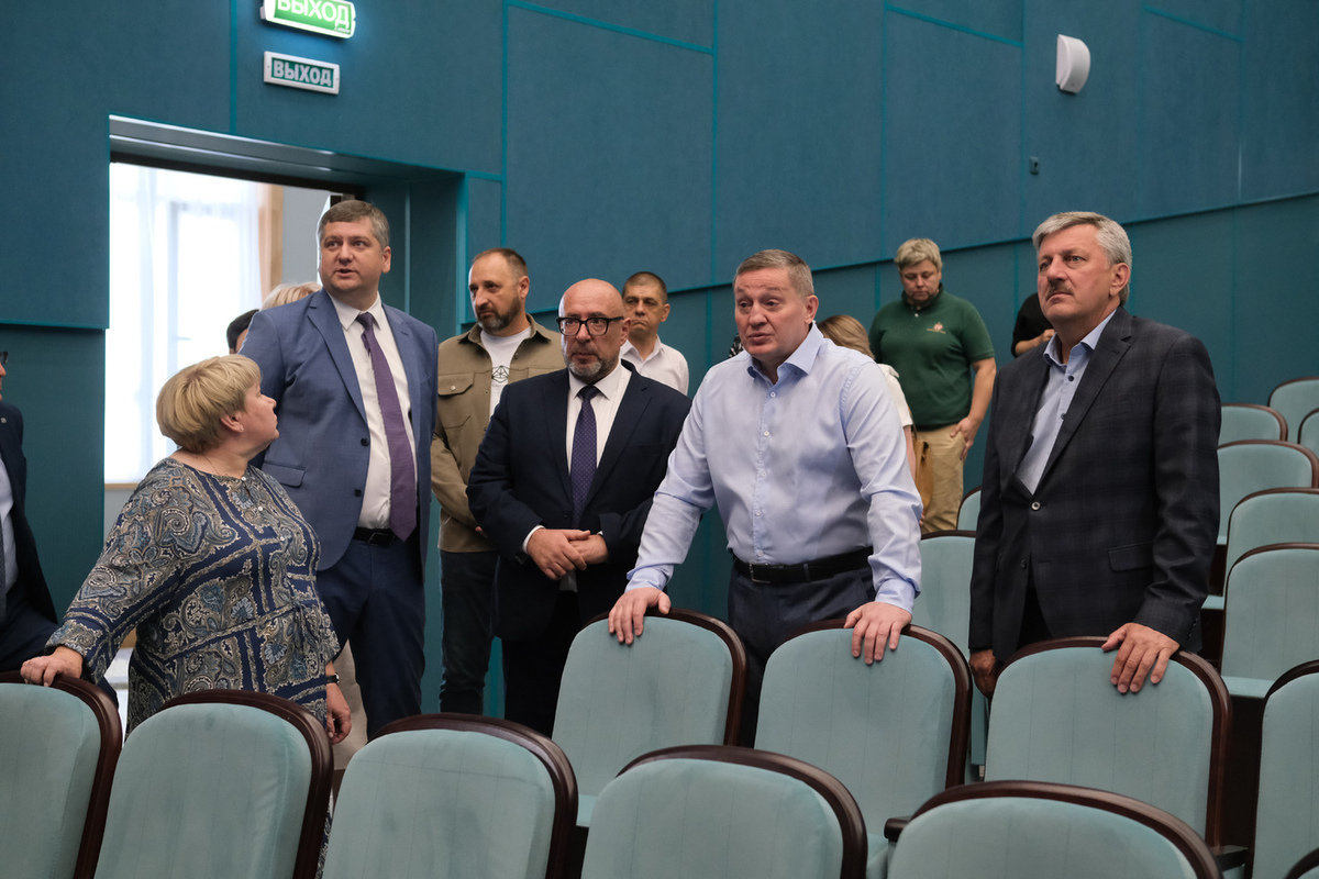 Сегодня Андрей Бочаров ознакомился с ходом реконструкции, осмотрел основные помещения театра, обсудил со специалистами готовность большого и малого залов, познакомился с вариантами дополнительного оформления фасада и входа в театр.