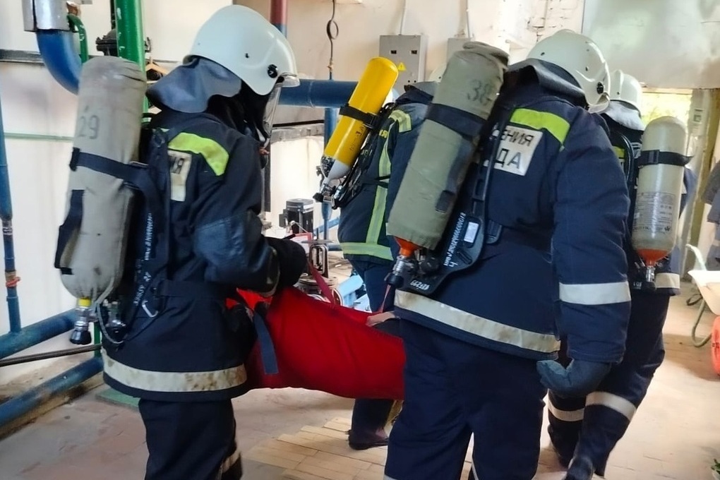 Учение прошли на базе котельной. Согласно сценарию, здесь случился взрыв газопровода, один из сотрудников получил травмы, ему нужна была помощь специалистов.