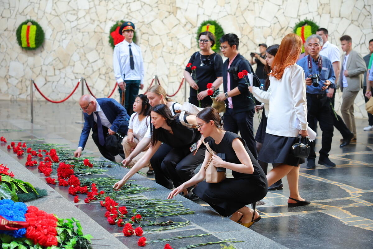 В Волгоград прибыли журналисты крупнейших медиахолдингов Армении, Бразилии, Вьетнама, Венесуэлы, Исландии, Объединенных Арабских Эмиратов, Китая и Ливана, представители МИД РФ. Делегация возложила цветы в Зале воинской славы на главной высоте России.
