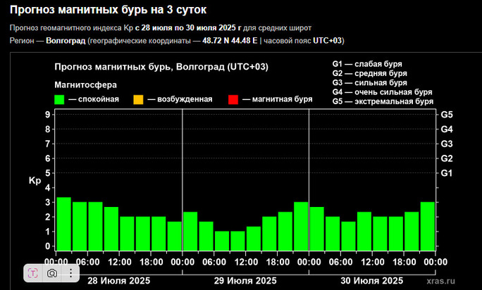 Основная фаза магнитной бури уровня G1 пришлась на 27 июля, однако ее последствия метеозависимые люди могут ощущать и в начале новой недели.