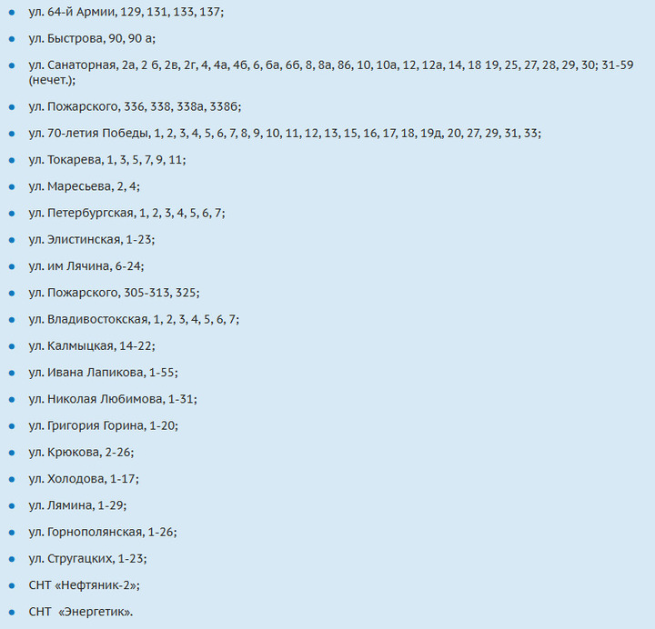В частности, без холодной воды на 6 часов останутся жители 20 улиц и двух СНТ: