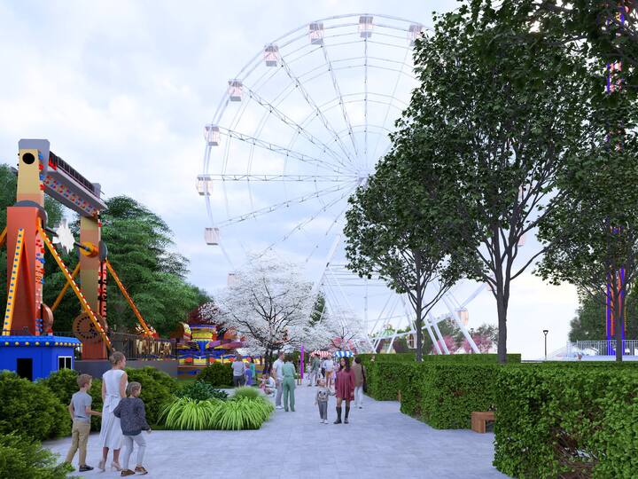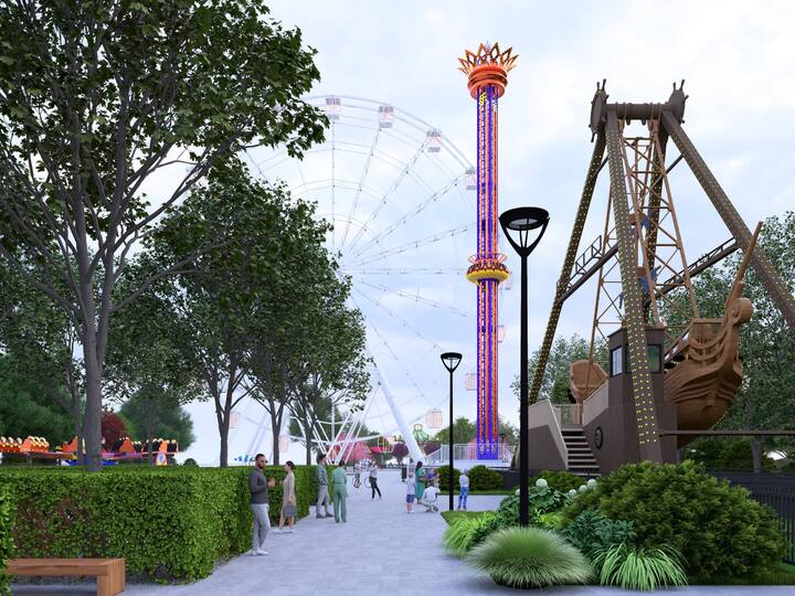 Проект предусматривает установку 10 аттракционов, включая 50-метровое колесо обозрения, экстремальную «Башню», автодром и цепочную карусель. Также запланированы масштабное озеленение территории и архитектурная подсветка.