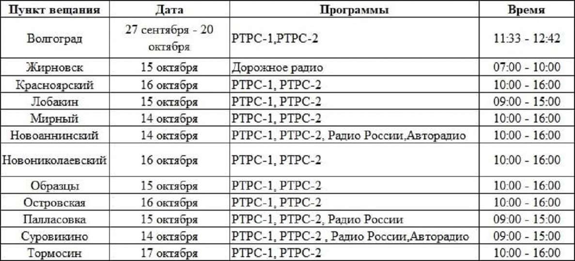 На новой рабочей неделе в Волгоградской области ожидаются перебои теле- и радиотрансляций. По данным регионального филиала Российской телевизионной и радиовещательной сети, неудобства коснутся жителей нескольких населенных пунктов.