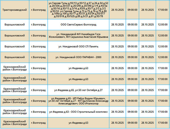 Список адресов, где отключат электричество в Волгограде 28 октября.