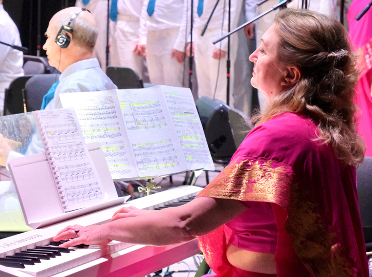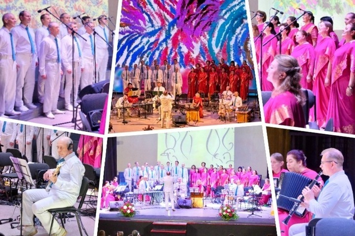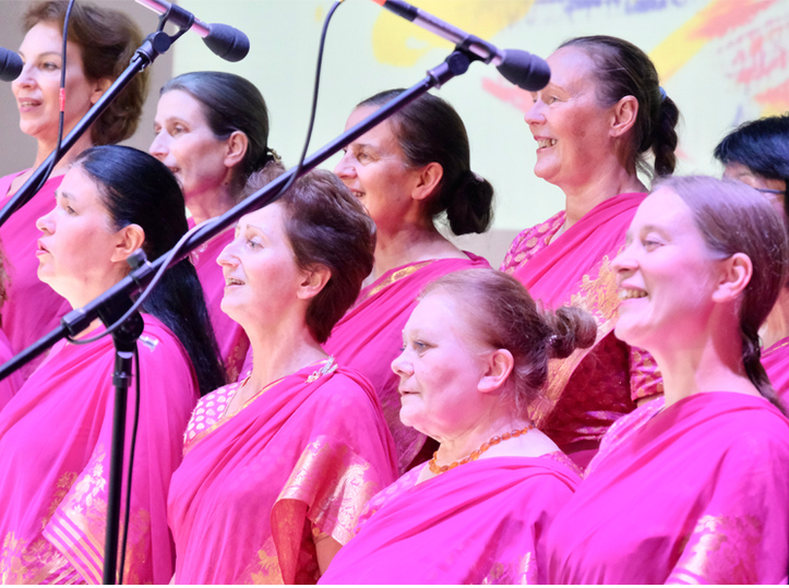 Коллектив, куда входит не только оркестр, но и хор, с первых минут удивил волгоградцев костюмами: женщины – в малиново-золотистых сари, некоторые – с цветами, мужчины – в кипенно-белых рубашках и бирюзовых галстуках.
