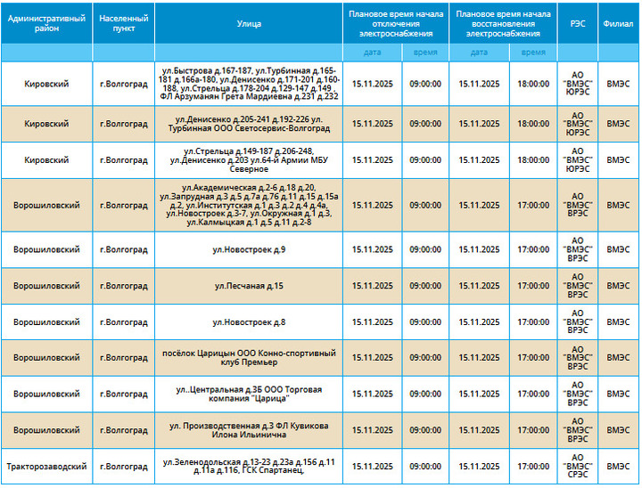 Согласно данным, предоставленным пресс-службой ресурсоснабжающей организации, 15 ноября будут проводиться работы на электрооборудовании и сетях в трех районах Волгограда.