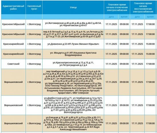 Энергетики запланировали проведение в Волгограде 17 ноября очередных профилактических работ на электросетях и электрооборудовании.