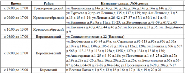 Как сообщили в ресурсоснабжающей компании, на 4 декабря энергетики запланировали проведение в Волгограде очередных работ на электросетях и оборудовании. По этой причине жители целого ряда домов, которые расположены в Ворошиловском, Краснооктябрьском, Тракторозаводском и Кировском районах, в четверг останутся без света на несколько часов.