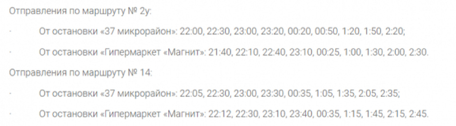 В администрации Волжского сообщили, что 6 января после 22.00 поедут дополнительные автобусы № 2у и 14. Развозить пассажиров они будут до 3 часов утра 7 января с интервалом около 30 минут.
