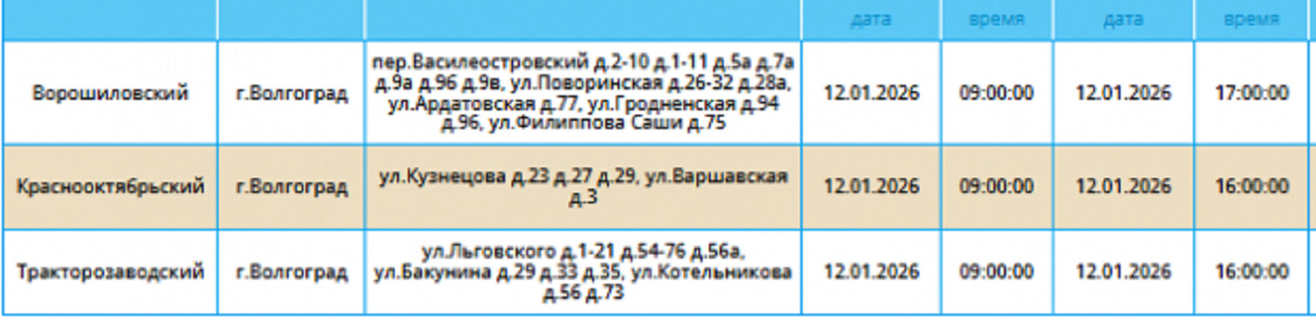 Как уточнили в ресурсоснабжающей организации, на понедельник, 12 января 2026 года, в Волгограде запланировано проведение профилактических работ на сетях и электрооборудовании.