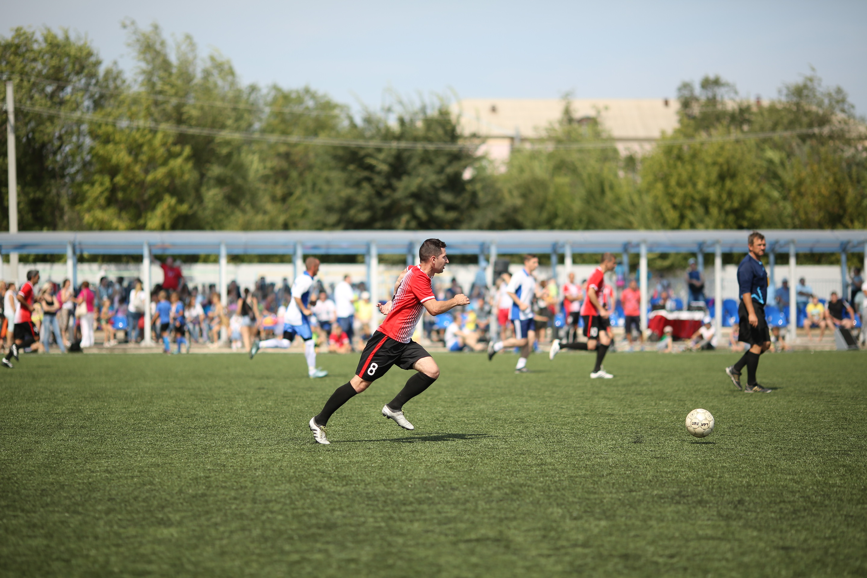 После торжественного открытия и выступлений коллективов спортшколы футбольные команды «Судостроитель» и «Темп-Лукойл» сыграли в футбол на новом поле.