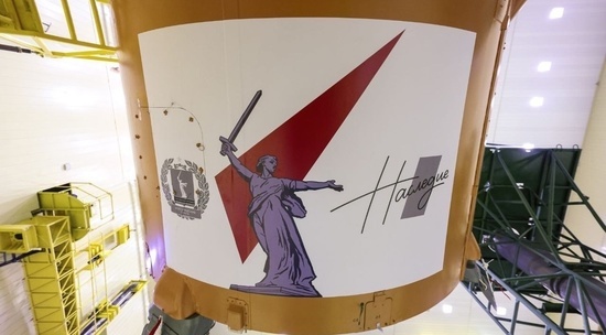 На космодроме подготовили к полету ракету, корпус которой украшен рисунками монумента «Родина-мать зовет!» и другими символами Волгограда и области.