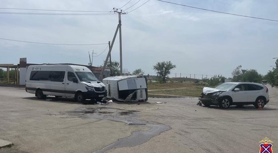 От удара одна из маршруток опрокинулась, сообщила пресс-служба ГУ МВД России по Волгоградской области.