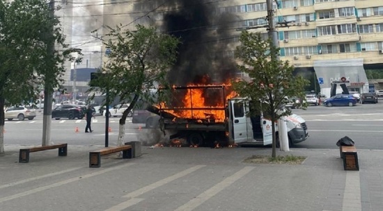 Волгоградцы днем 30 мая заметили горящий грузовик около остановки «Современник» в Центральном районе.